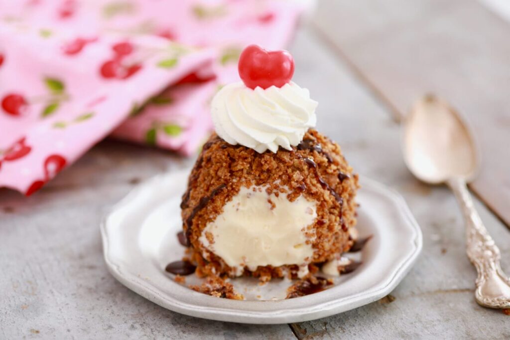 پس از آن‌که بستنی مورد علاقه‌تان را انتخاب کردید، آن را به صورت گردالوهای کوچک دربیاورید و حدود یک ساعت در فریزر بگذارید. سپس، تخم‌مرغ و شیر را داخل یک کاسه بریزید و خوب هم بزنید. بعد از یک ساعت، بستنی‌ها را از فریزر بیرون بیاورید و روی خرده نان‌ها رول کنید. سپس آن‌ها را در ترکیب تخم‌مرغ و شیر زده قل بدهید و دوباره در خرده‌های نان آن‌ها را بغلتانید. این عمل را حدود ۳ یا ۴ بار تکرار کنید و یادتان باشد که برای جلوگیری از ذوب شدن بستنی، باید خیلی سریع عمل کنید. بعد روی بستنی‌ها را پوشش بدهید و آن‌ها را در حدود ۲ یا ۳ ساعت در فریزر بگذارید. بعد از ۲ یا ۳ ساعت، می‌توانید آن‌ها را در روغن داغ با حرارت زیاد به مدت چند ثانیه سرخ کنید. پس از سرخ شدن بستنی‌ها از آن‌ها لذت ببرید.