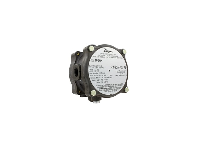 سوئیچ‌های فشار سری Dwyer 1950 بهترین ویژگی‌های پرشر سوئیچ محبوب سری 1900 Dwyer را با بدنه ضد انفجار و ضد آب و هوا ترکیب می‌کنند و آن را برای هر کدام از کاربردها ارزشی استثنایی می‌سازد. این CE، UL و CSA فهرست شده است، FM برای استفاده در اتمسفرهای خطرناک کلاس I، Div 1، گروه های C و D، گروه های کلاس II E، F، و G و کلاس III تایید شده است. محفظه تایید شده NEMA 3، 7 و 9 شامل یک پلاگین تخلیه و مهر و موم O-ring در پوشش است که آن را هم ضد بارندگی و هم ضد آب می کند. اتصالات الکتریکی با برداشتن پوشش جلو به راحتی انجام می شود. برای راحتی، پیچ تنظیم نقطه تنظیم در قسمت بیرونی محفظه قرار دارد. دوازده مدل دارای نقاط تنظیم از 0.03 تا 20 اینچ wc (7.5 تا 5 کیلو پاسکال) و از 0.5 تا 60 psi (0.035 تا 3.5 bar) هستند. سوئیچ های مقاوم یا ضد آب با محفظه های جداگانه.